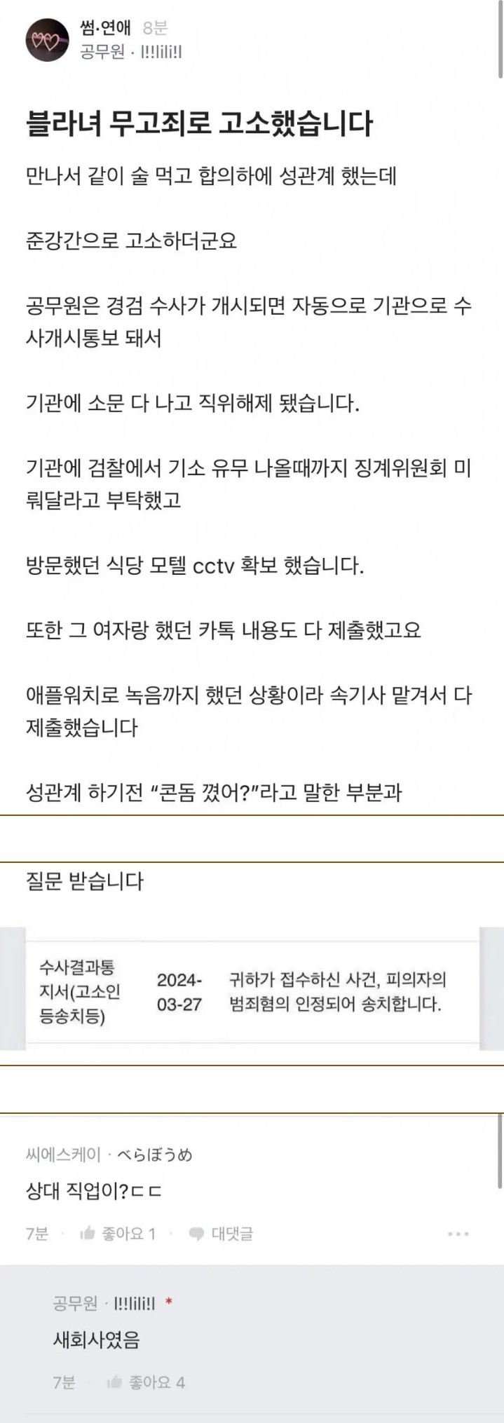 검색 블라인드에 난리난 성무고죄 고소남 유우머11 무고죄 형량 최소 10년으로 시작해야함 그리고 경찰의 태도도 문제임.일관성 있는 진술이라면 증거 없이도 범인으로 모는 이런 행태... 공유하기 게시글 관리 유우머 '오늘의유우머' 관련 글 여배우와 함께보는 전화기의 발전 2024.04.13 요즘 남자들 사상 기괴하다는 판녀 2024.04.13 사람 진빠지게 대화하는 방법 2024.04.13 두릅도둑을 잡았습니다.jpg 2024.04.13