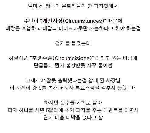 검색 캐나다 피자헛 임시휴업한 이유 유우머11 한국인 사장이 개인사정 번역기 돌린거 였으면....형도 혹시 돈까스 먹으로 갔어? 공유하기 게시글 관리 유우머 '오늘의유우머' 관련 글 고립 은둔 청년 54만명.jpg 2024.04.04 땀 너무 많이 흘리면서 야외활동하면 안 되는 이유 2024.04.04 싱글벙글 노벨피아 사과공지 2024.04.03 유튜버가 다녀간 뒤의 경동시장.jpg 2024.04.03