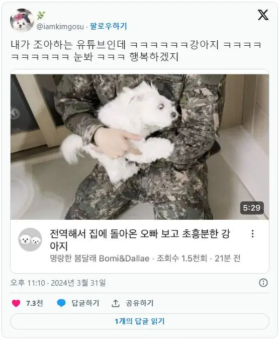 검색 군대간 오빠 하염없이 기다리던 강아지 유우머11 막내딸같은 개 말티즈 ㅜㅜ 공유하기 게시글 관리 유우머 '오늘의유우머' 관련 글 집 고를 때 사람들이 남향 찾는 이유.jpg 2024.04.02 여의도 벚꽃축제 1만원짜리 제육덮밥 2024.04.02 한국인은 용서해도난 용서를 못 한다는 미국인.jpg 2024.04.02 레고 장인이 만든 건담 2024.04.02