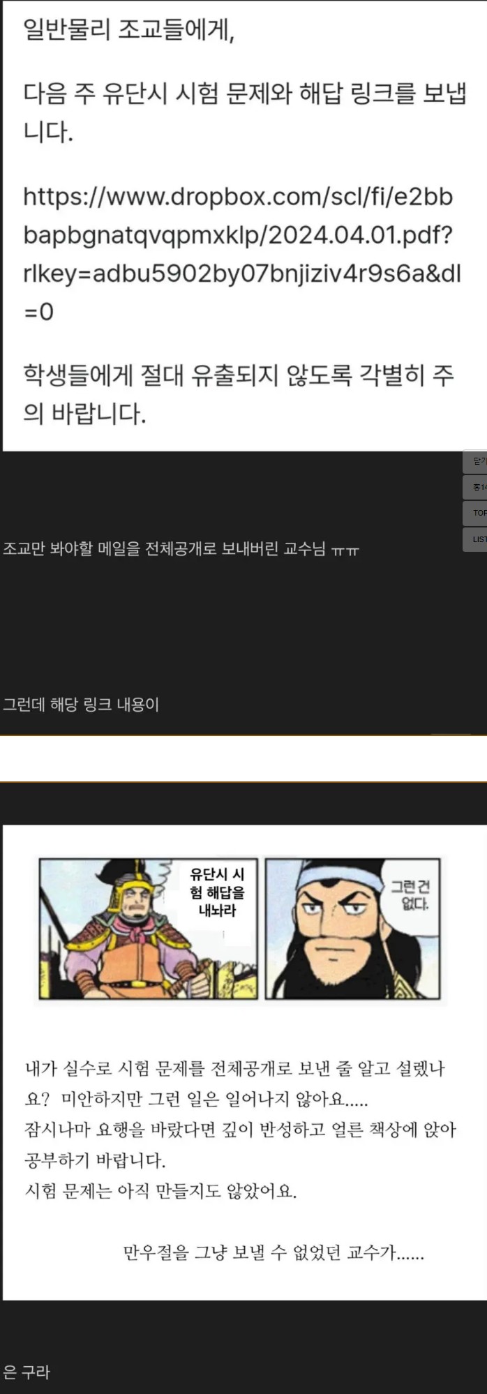 검색 실수로 시험 문제를 유출해버린 교수님 유우머11 교수평가할 때 보자 뿌드득.. 공유하기 게시글 관리 유우머 '오늘의유우머' 관련 글 병역기피자 근황.jpg 2024.04.05 나보다 한참 어린 여직원이 자꾸 커피 사주는 이유 2024.04.04 유재석에게 아침부터 영덕게 먹자고 전화한 강호동 2024.04.04 한 꼬마 남자애를 평생 팬으로 만든 팬서비스 2024.04.04