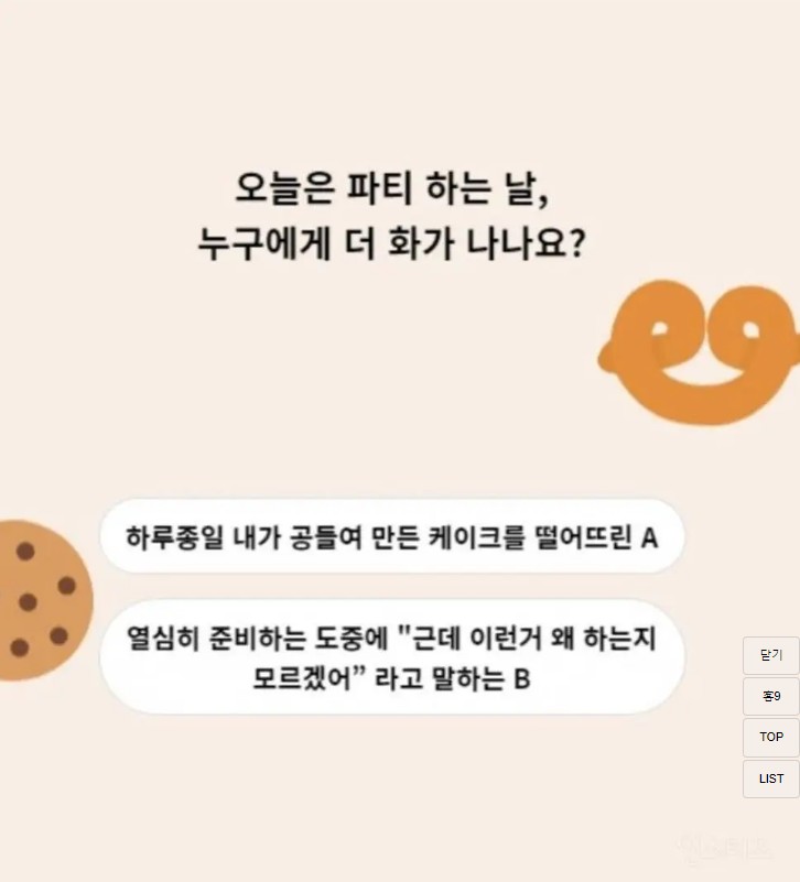 검색 오늘은 파티 하는 날, 누구에게 더 화가 나나요? 유우머11 A: 실수 B: 의도 공유하기 게시글 관리 유우머 '오늘의유우머' 관련 글 중고차 가격방어 탑티어 ㅋ 2024.04.05 뉴스에도 나온 오늘자 레전드 당근마켓 2024.04.05 전 직장에서 대형사고 터짐 ㄷㄷ.jpg 2024.04.05 의외로 많다는 아빠 유형.jpg 2024.04.05